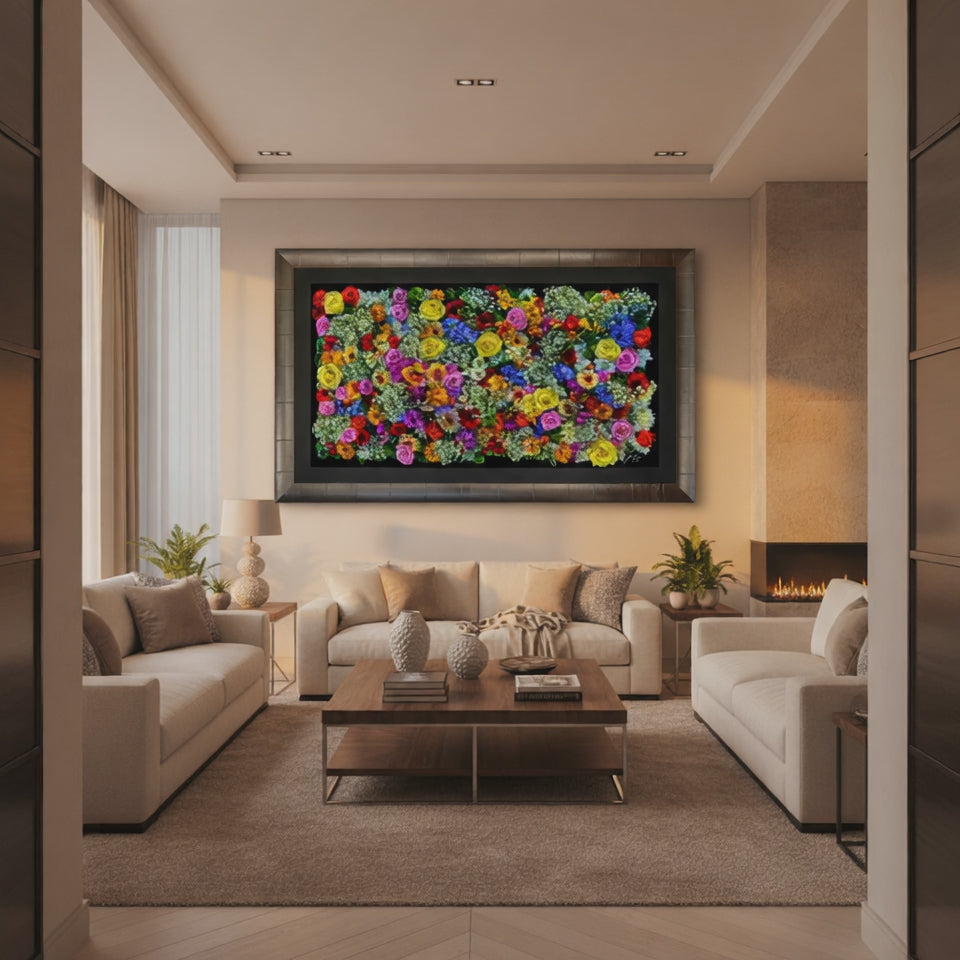 The colors vibrate as if they were breathing. The yellow roses glow as if the light were coming from within. The red gradually turns to orange, then back to scarlet.
